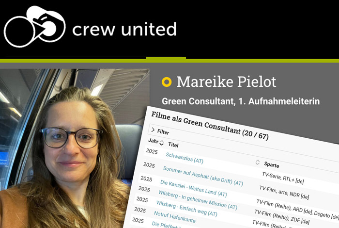Ich bin erfahrene 1. Aufnahmeleiterin, studierte Nachhaltigkeitsmanagerin sowie Medientechnikerin mit Schwerpunkt auf Film und Fernsehen und habe mich durch zahlreiche Weiterbildungen im Bereich Green Consulting und nachhaltiger Produktionspraxis spezialisiert. Unter anderem bin ich zertifizierte Green Consultant und als Vorstandsvorsitzende im Berufsverband Green Consultants Film & TV aktiv. Mein Wissen halte ich durch regelmäßige Fortbildungen zu Umweltmanagement, CO₂-Bilanzierung und sozialer Nachhaltigkeit in der Medienbranche stets auf dem neuesten Stand.